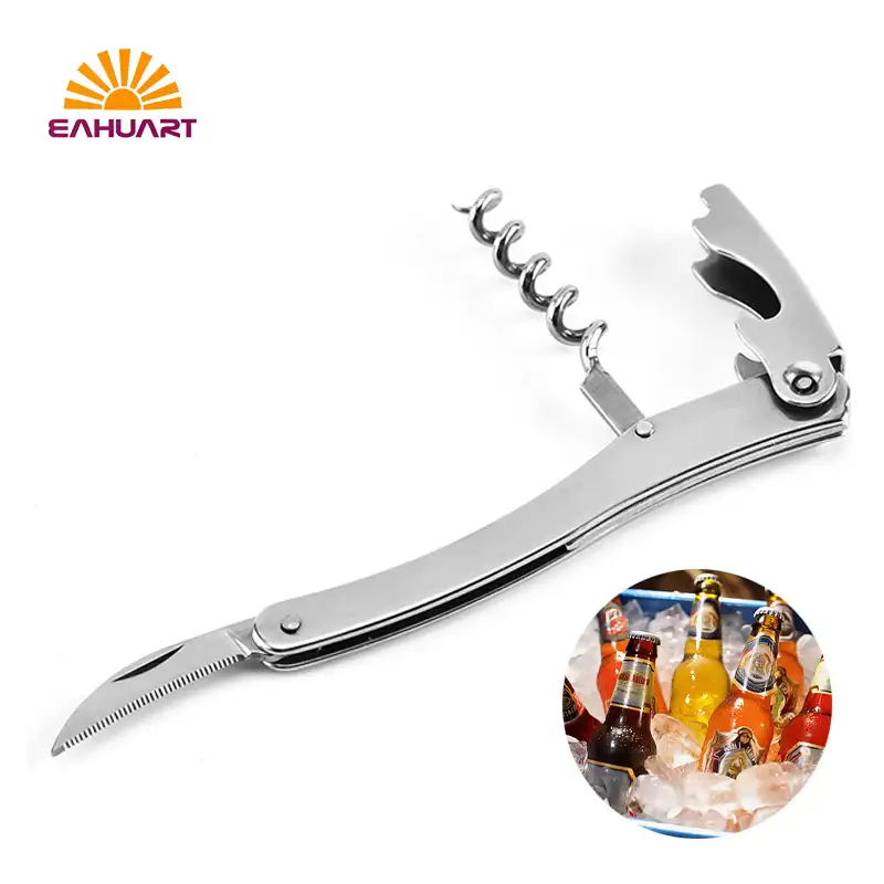 • Premium Material:Made from high-quality food-grade stainless steel, the opener and integrated knife boast exceptional durability, corrosion resistance, and long-lasting sharpness. The sturdy construction withstands repeated use without bending or dulling, while the non-toxic, BPA-free material ensures safe contact with food and drinks.