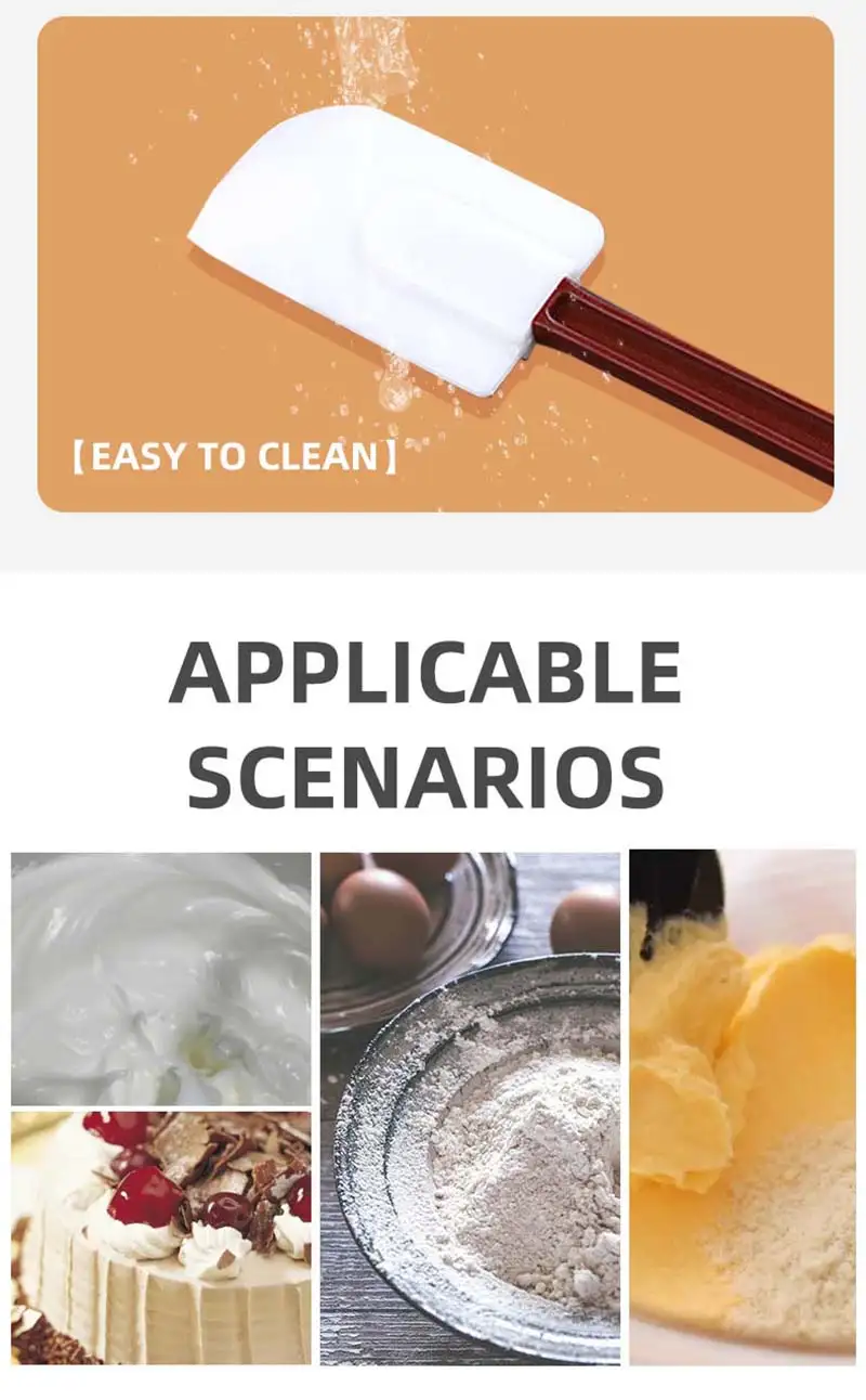 • Elegant Design: Featuring a sleek and elegant design, this silicone butter scraper elevates everyday kitchen tools with its modern aesthetic. Its streamlined shape includes a flat, wide scraping edge (optimized for reaching every corner of bowls and pans) and a comfortable, contoured handle that fits naturally in your hand—reducing strain during repetitive tasks like scraping thick batter or spreading cold butter.
