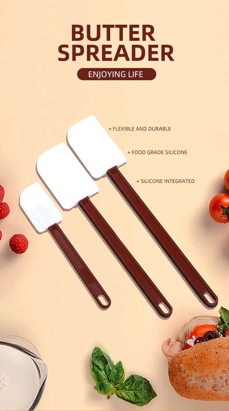 This silicone butter scraper is a versatile must-have for home bakers and cooks, designed to simplify butter-related tasks and other kitchen prep work. It effortlessly scrapes every last bit of butter, cream, batter, or sauce from bowls, pans, and mixing containers—reducing food waste—while also working as a smooth butter spreader for toast, pastries, or baking sheets.