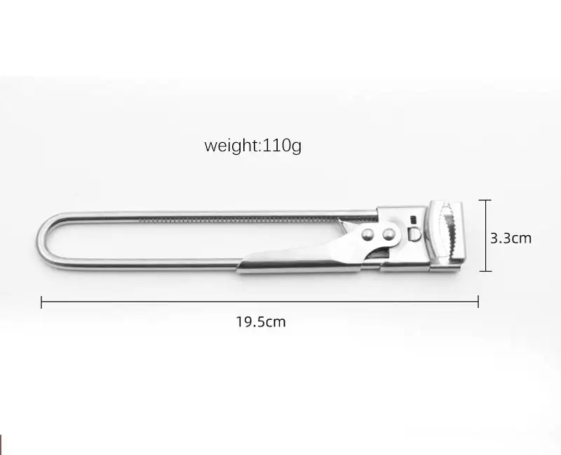Model No.: KW-O153 Material: Stainless steel Size:195*33mm,110g Color :Silver/Customized Style: Simple, Modern, Latest, Popular MOQ: 300pcs Sample lead time: 3-7 days Use: Home kitchen/ Cooking/ Outdoor Picnic/ BBQ/ Restaurant Feature: Easy and fast opening, Rust-resistant, Safe operation Place of origin: Guangdong,China