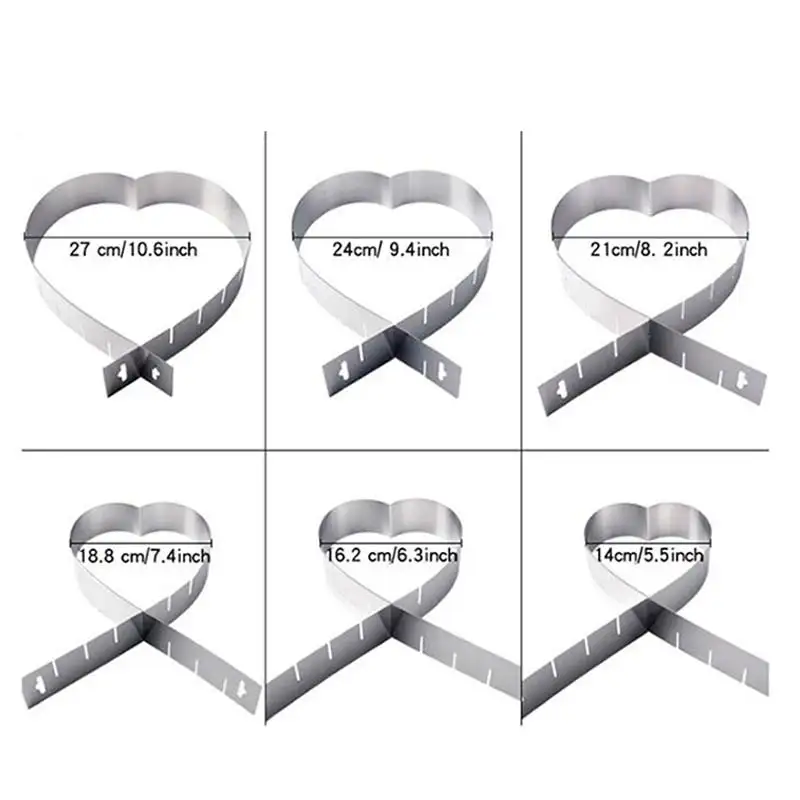 Our adjustable stainless steel heart cake ring takes the hassle out of making heart-shaped desserts—no need to buy multiple fixed-size molds! It easily adjusts to fit your needs, whether you’re baking a small 4-inch cake for two or a larger 8-inch one for a party.