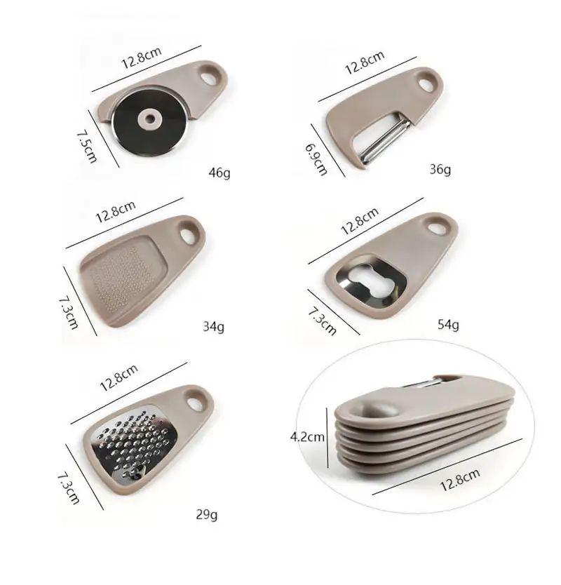 This 5-piece multi-functional vegetable grater set is a must-have for home cooks, meal preppers, and culinary enthusiasts, designed to simplify every shredding, grating, and slicing task in the kitchen. The set includes 5 specialized graters—from fine graters for parmesan cheese/nutmeg, medium graters for carrots/zucchini, coarse graters for potatoes/cabbage, to slicers for cucumbers/radishes and a small grater for delicate fruits like apples—covering all your veggie, fruit, and cheese prep needs.