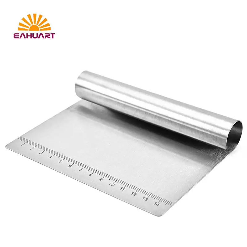 This stainless steel flour scraper is a versatile baking essential, designed for scraping, cutting, and shaping dough, as well as cleaning flour from countertops—blending durability, functionality, and a sleek look to elevate your home baking experience.