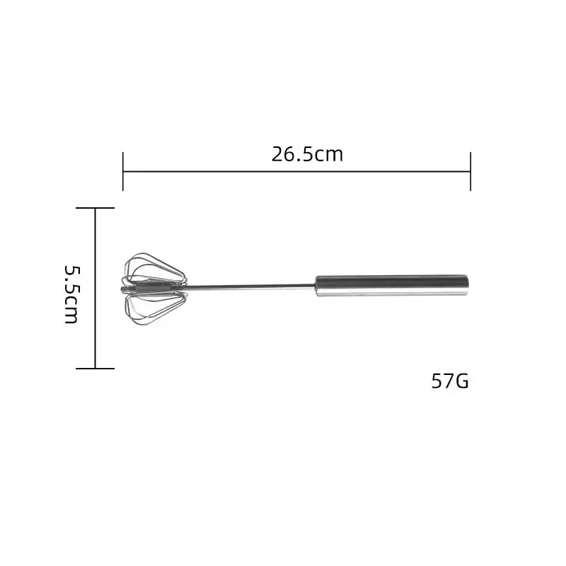 • Elegant Design: Boasting a sleek, minimalist aesthetic, this manual egg beater features a streamlined handle and evenly spaced stainless steel wires that blend functionality with visual appeal. The ergonomic handle fits comfortably in both left and right hands, reducing hand fatigue even during extended mixing sessions, while the balanced weight distribution ensures smooth, controlled whisking.