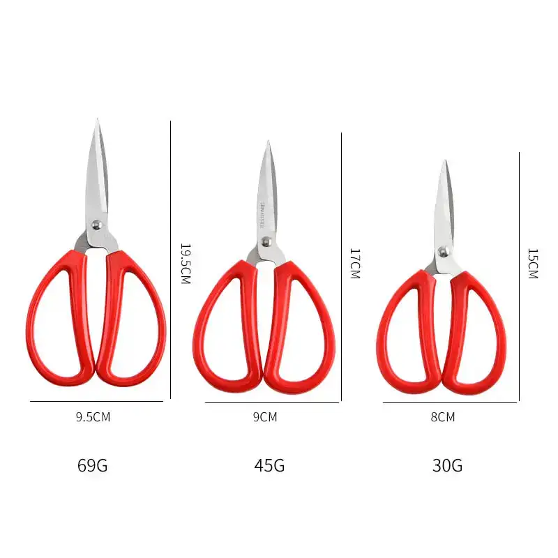 Model No.: MS-S254 Material: Stainless steel and Plastic Size:95/90/80mm,69/45/30g Color :Red/Customized Style: Simple, Modern, Latest, Popular MOQ: 300pcs Sample lead time: 3-7 days Use: Home Kitchen/ Household / Daily Use/ Office/ Gardening Feature:Sharp, Multi-Function, Rust-Resistant & Durable Place of origin: Guangdong,China