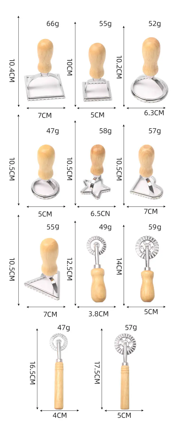 Model No. : BW-F203SET Material: Stainless Steel and Wood Handle Size:104*70mm,66g Color : Silver/Customized Style: Simple, Modern, Latest, Popular MOQ: 300pcs Sample Lead Time: 3-7 Days Use: Kitchen/Restaurants/Pizza/Home Baking/Bakery/Cake Feature: Heat-resistant, Eco-friendly, Multi-functional, Flexible Place of origin: Guangdong,China